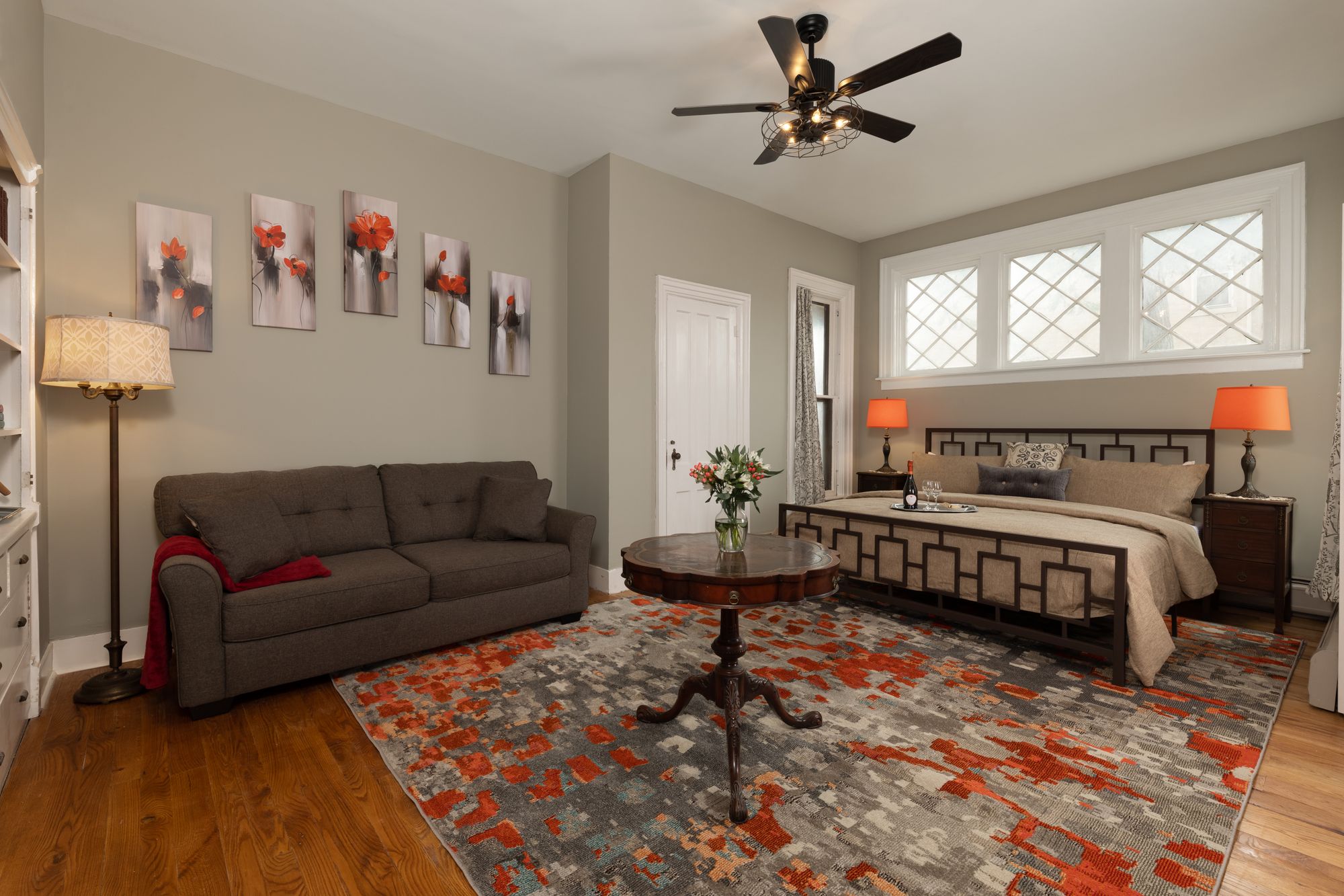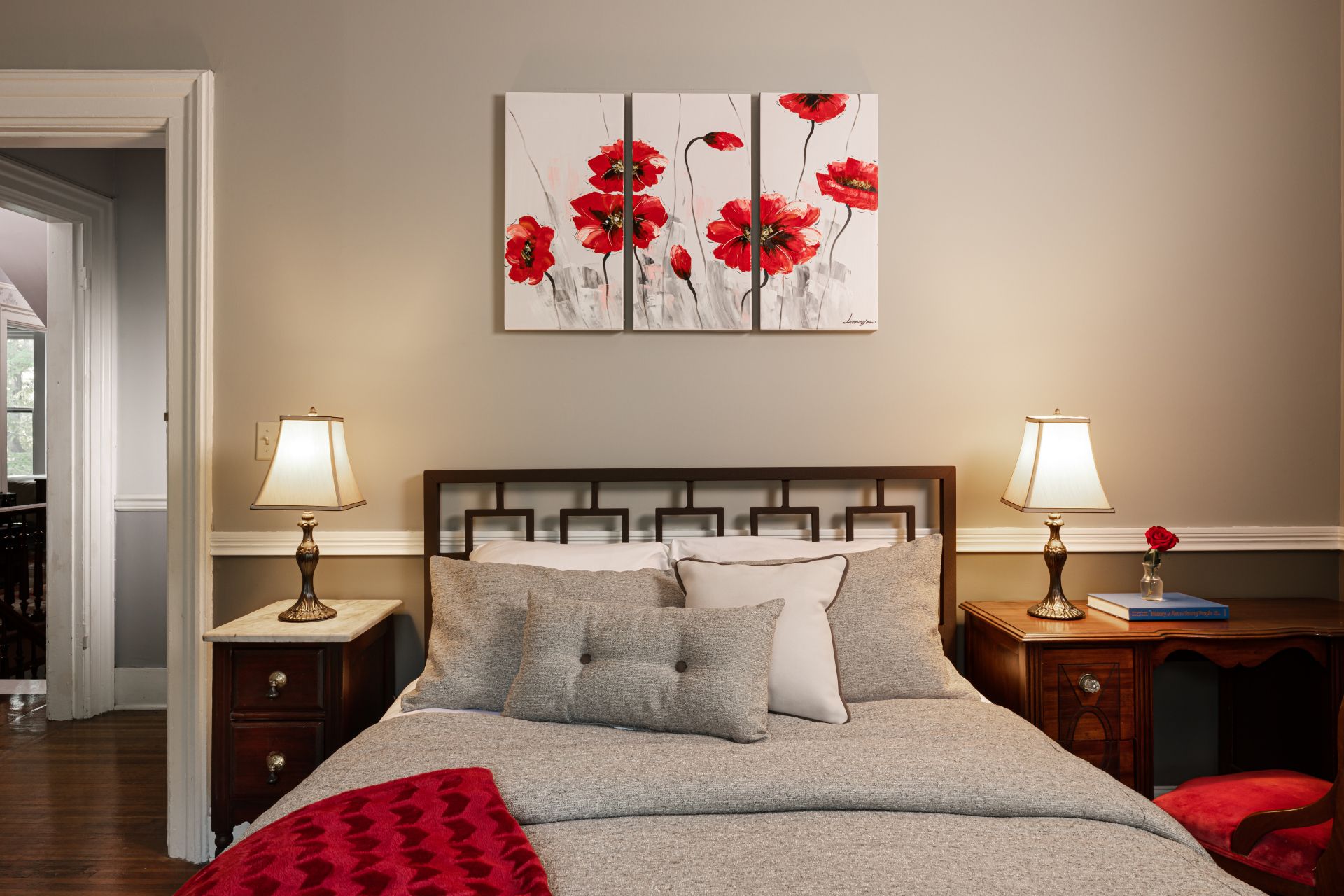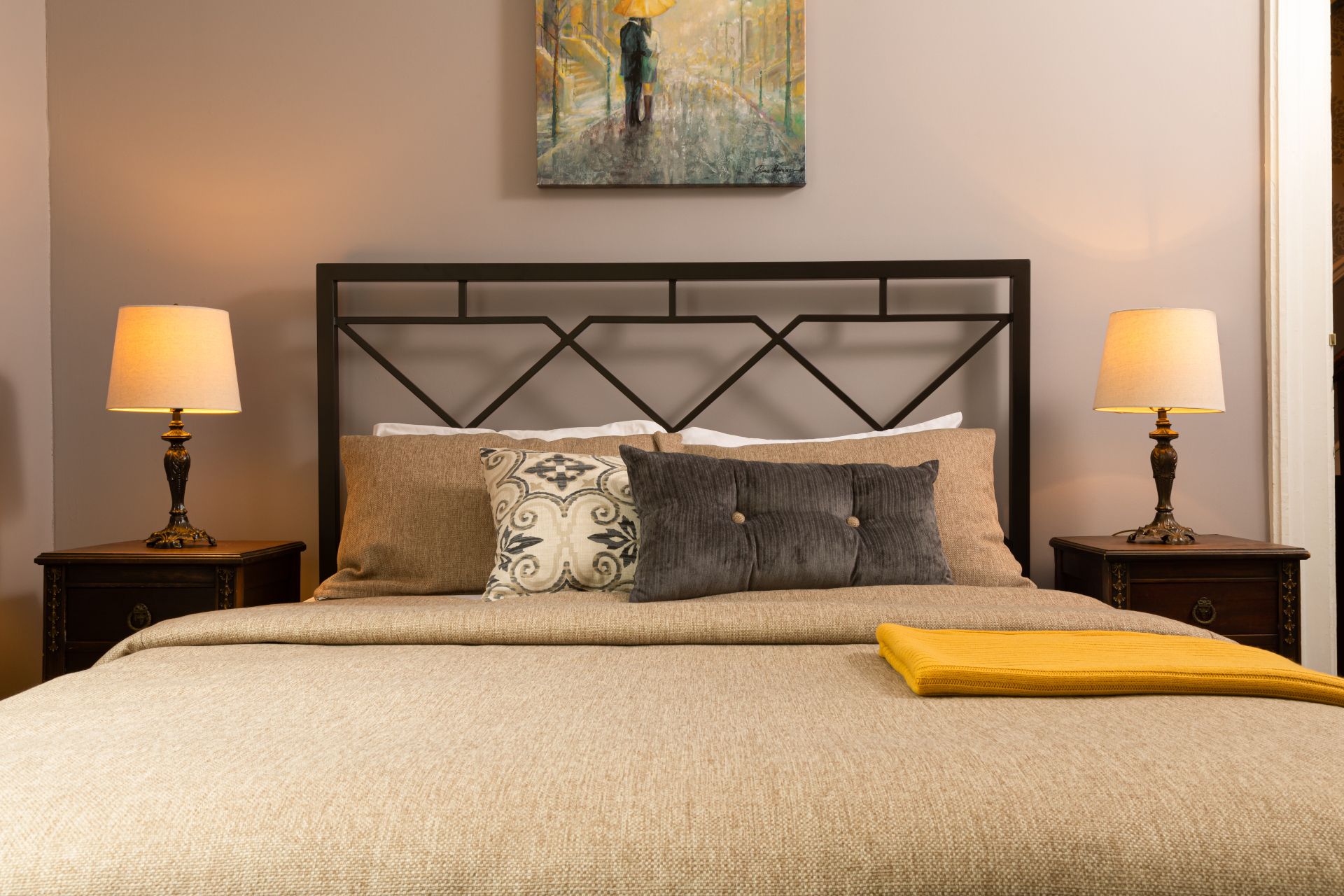 Lagerfeld peacefully sits at the back of the house overlooking the backyard. With a small desk and soothing color scheme, Lagerfeld provides a very comfortable working space for business travelers of all trades. After completing your work in Downtown Utica or the surrounding area, our historic bed and breakfast space will welcome you back in style.