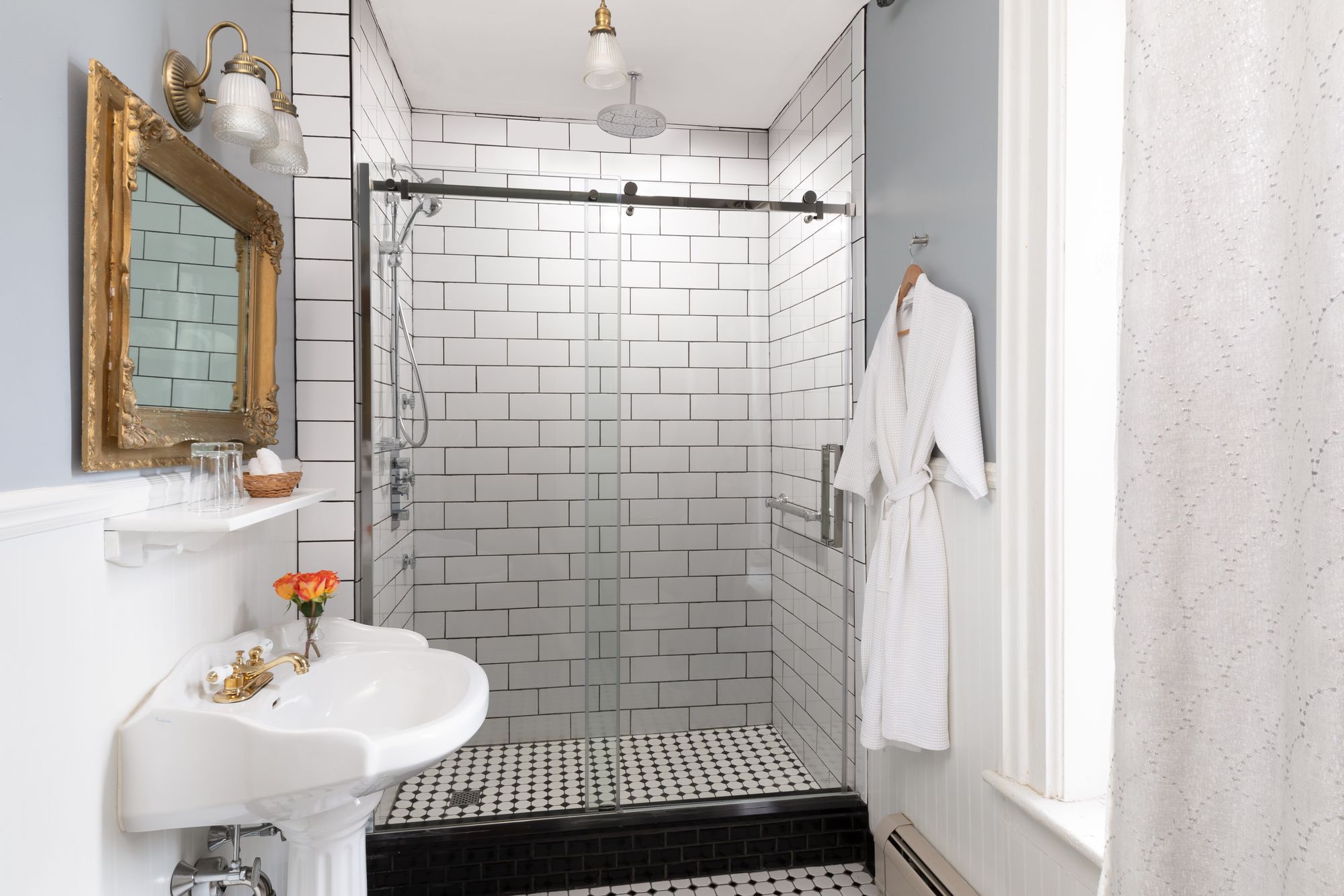- Private bath with claw-foot tub and ring shower