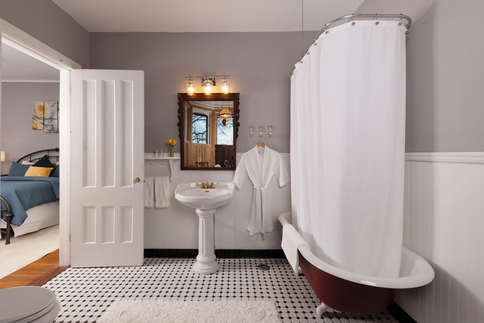 Chantilly Features Clawfoot Soaking Tub, Large Bathroom With Balcony Bay Windows, and King Sized Bed
